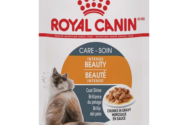 Pate cho mèo đẹp da lông Royal Canin Intense Beauty cho mèo trưởng thành trên 1 tuổi. Sản xuất dưới dạng Gravy, dạng hạt mềm ngâm trong sốt cô đặc dạng thạch. Hiệu quả thấy rõ sau 21 ngày sử dụng – lông mèo mềm mượt và chắc khỏe hơn.